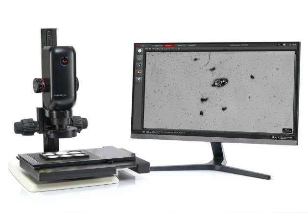 将处理后的滤片放入徕卡清洁度检测显微镜(如DM6 M、Emspira 3等型号),系统通过优化算法自动完成扫描与颗粒识别,无需人工频繁干预。显微镜具备自动对焦功能,可快速获取清晰的颗粒图像,同时通过多样品支架,实现多批次样品的连续检测,大幅提升检测通量——相比传统手动检测,效率提升30%以上,且避免了人工操作带来的误差。
